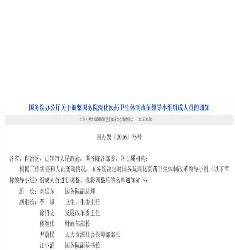 图1国务院办公厅关于调整国务院深化医药卫生体制改革领导小组组成人员(部分)