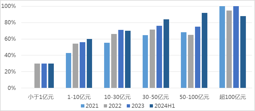 根据清科研究,2023年至2024年上半年新成立的基金中👿,国有基金管理人在认缴规模不到1亿元的小型基金中占比约30%,在认缴规模1亿元~30亿元的中型基金中约占比约60%~70%,而在认缴规模30亿元以上的大型基金中约占比约85%~100%。