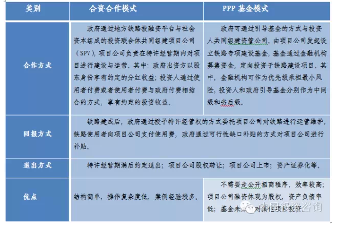 分析PPP的不同模式的适用特点铁路项目的PPP操作模式包括合资合作模式和PPP基金模式🧎🏻。比较两种模式,基金方式在招商程序效率🤘🏼、财务结构优化和未来多元化投资方面有明显的优势,而合资合作模式的结构简单🧘🏿‍♀️,操作复杂度相对较低,在铁路项目的实际应用时应根据地方政府、投资人的各方意愿和出资能力综合分析💍,从而选择合适的方案